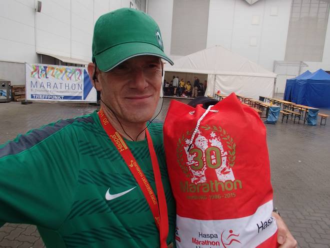 Hamburg Messe 12.37 Uhr Immer wieder schade, daß ich nach einem Marathon so wenig Hunger habe. |