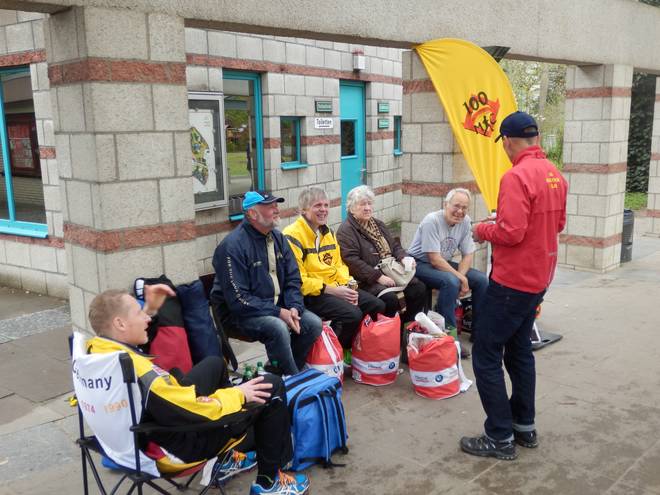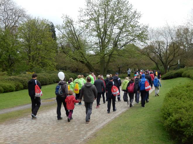 Planten un Blomen 14.17 Uhr Am Spielplatz in Planten un Blomen schaute ich noch beim traditionellen Treffen des 100 Marathon Clubs vorbei. Dort trudelten auch nach und nach die erfolgreichen Läufer ein. |