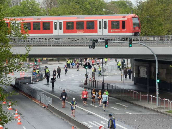 Dammtordamm 14.45 Uhr Auch 5:45 Stunden nach dem Start waren immer noch eine ganze Reihe Läufer auf der Straße. Der letzte Läufer 2015 kam nach 7:08:58 Stunden Laufzeit um 16.33 Uhr ins Ziel. |