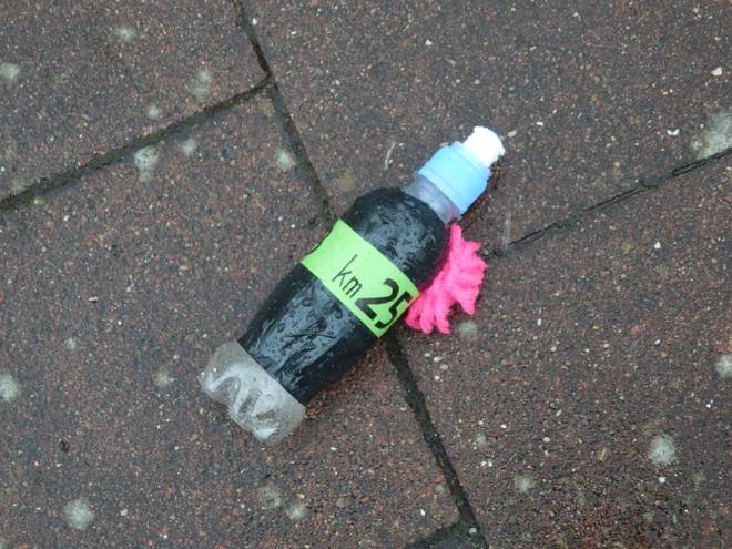 Überseering 15.15 Uhr Die Reinigungsleute hatten fast perfekte Arbeit geleistet. Mit Ausnahme dieser Flasche lag kaum noch Marathon-Müll in der Gegend herum. |
