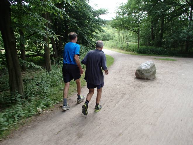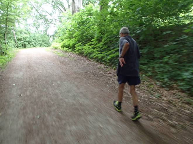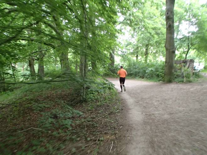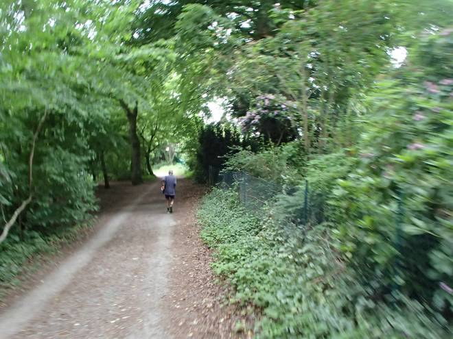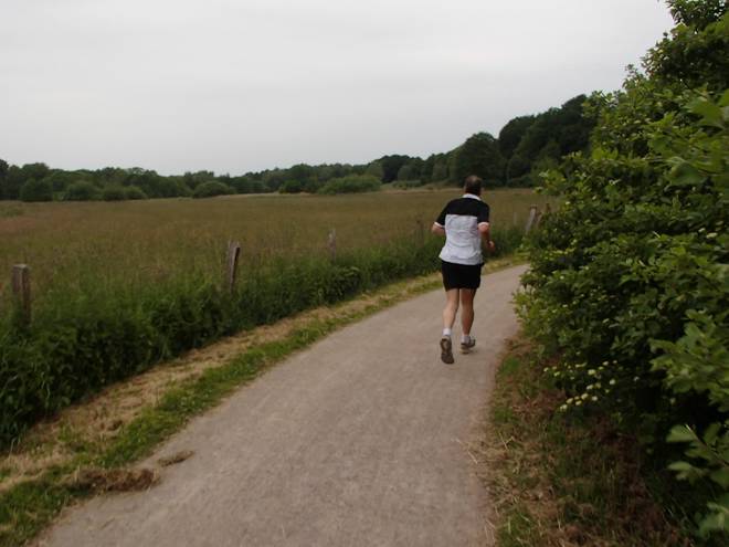 Runde 6 15.48 Uhr / Km 14,5 Ich lief schneller als drei Wochen zuvor an selber Stelle mit da noch heilem Fuß. Interessant. |