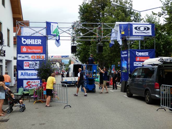 Kemptener Straße 14.50 Uhr Eigentlich sollte es um 15.00 Uhr mit den Kinderläufen los gehen, aber man war mit dem Aufbau von Start und Ziel noch nicht fertig. |