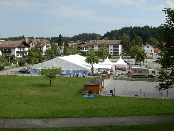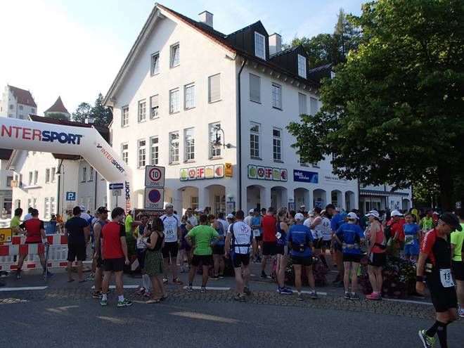 Hohes Schloß Füssen Luipoldstraße 7.00 Uhr Der Marathon-Tag startete mit blauem Himmel und 18°C. Das war sehr angenehm. Allerdings versprach der Wetterbericht noch bis zu 28°C während des Laufes. Aber trocken sollte es bleiben. |