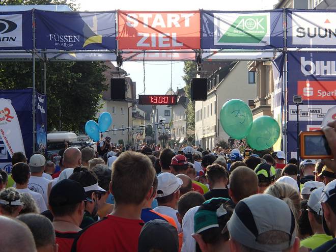 Morisse Kemptener Straße 7.20 Uhr Nach 153 Läufern beim Zehn-Kilometer-Lauf und 288 beim Halbmarathon traten beim Marathon 480 Läufer an. In der Regel sind es beim Marathon immer weniger, aber in Füssen ist das anders. Nach allgemeiner Meinung wird die Strecke ja auch mit zunehmender Länge immer schöner. Mal abwarten. |