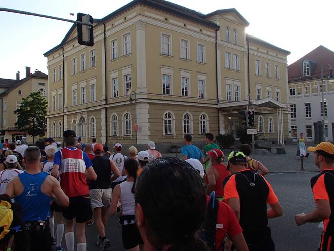 Prinzregentenplatz Augsburger Straße 7.32 Uhr / Km 0,3 Anders als bei Halbmarathon und beim Zehn-Kilometer-Lauf machte man keine Tour durch das Stadtzentrum, sondern es ging hier an der Touristen-Information vorbei Richtung Stadtausgang. |