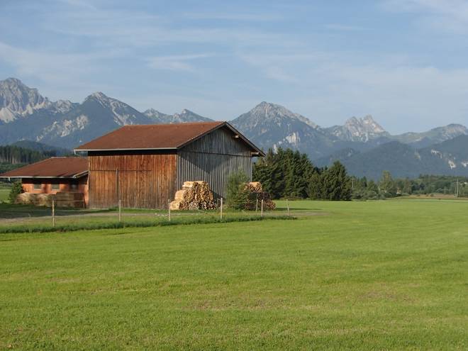 Hopfensee Rundweg Bauernhof Guggemos 8.22 Uhr / Km 9,4 So erreichten wir dann Hopfen am See. |