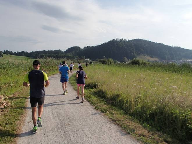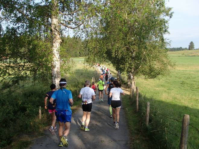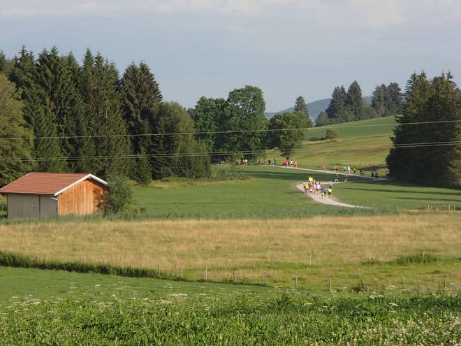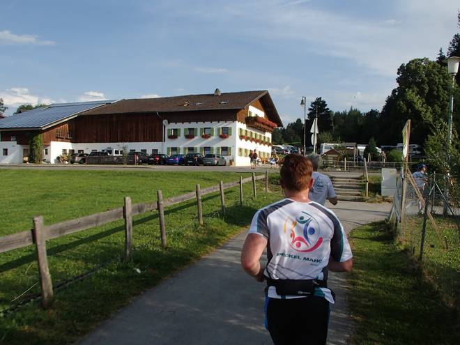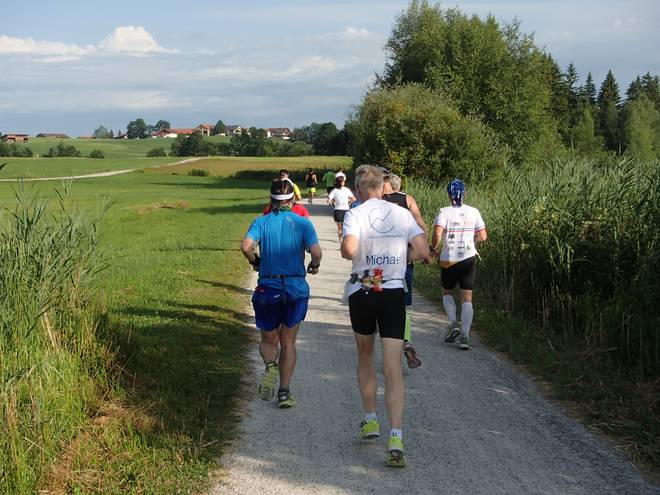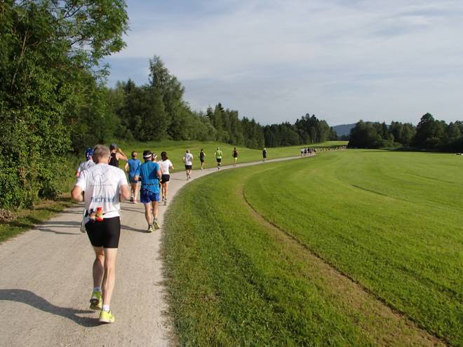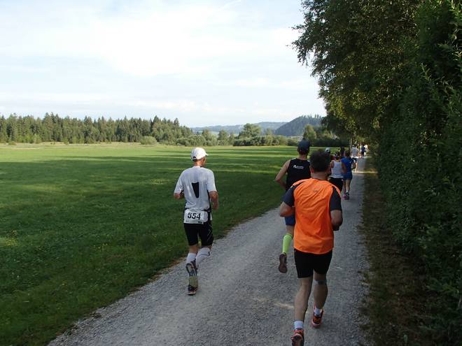Hopfensee Rundweg 8.02 Uhr / Km 5,8 Die Veranstalter werden ganz unverhohlen mit "Strecke 60% am Wasser". Das beinhaltet auch viele Kilometer, auf denen man das Wasser nicht sehen kann. |
