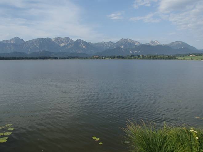 Hopfensee Rundweg 8.05 Uhr / Km 6,6 Aber eigentlich hatte ich weiter eher den Blick für die Berge. |