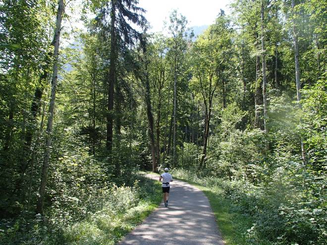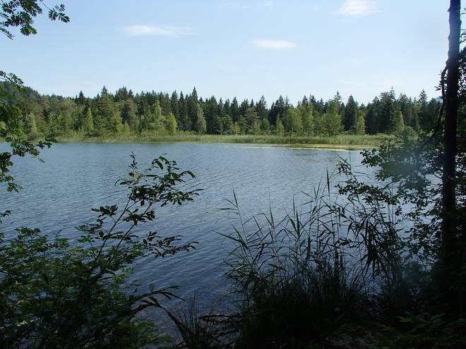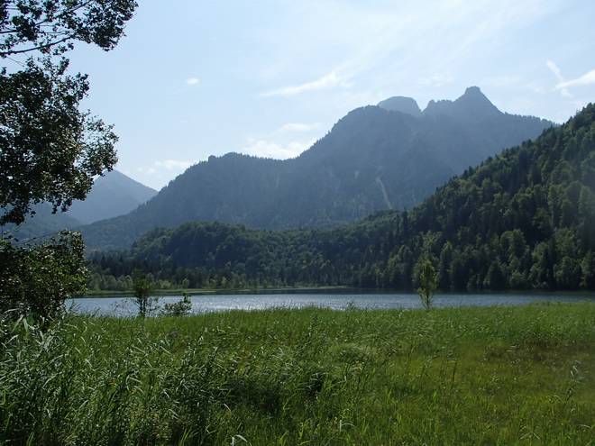 Schwansee 11.23 Uhr / Km 37,7 Durch den Wald war ich zwei Tage zuvor auf dem Weg vom Tegelberg via Alpsee nach Füssen runter gekommen. |