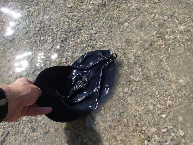 Schwansee 11.28 Uhr / Km 38,4 Und dann machte ich die Idee wahr und holte mir kühles Wasser aus dem See. Zwar habe ich es nicht getrunken, aber zur Abkühlung taugte es. |