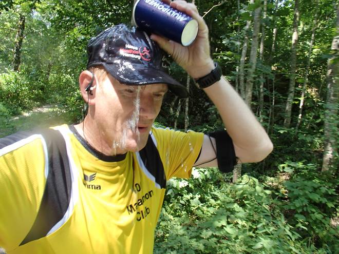 Königssträßchen 11.30 Uhr / Km 38,6 Nach 200 Metern war ich schon wieder aufgeheizt und holte mir gleich die nächste Abkühlung. Und jede Menge trinken. |