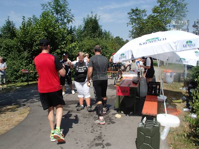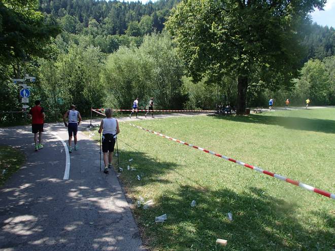 Lechsteg Promenade Lechuferweg B16 11.48 Uhr / Km 40,7 Der letzte Verpflegungsstand. Und wieder kippte ich mir Becher um Becher in den Hals. |
