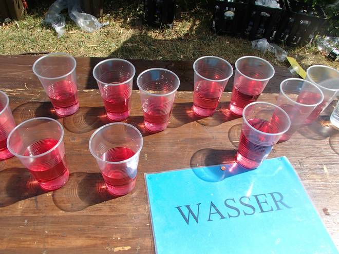 Königssträßchen 11.31 Uhr / Km 38,6 Das Treffen des Kopfes mit Wasser klappte immer besser. |