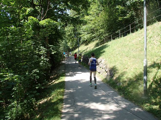 Alatseestraße 11.56 Uhr / Km 41,8 Die Steigung war zu erwarten gewesen. Ich hatte sie dennoch verdrängt gehabt. Aber egal. Da rannte ich nun auch noch hinauf. |