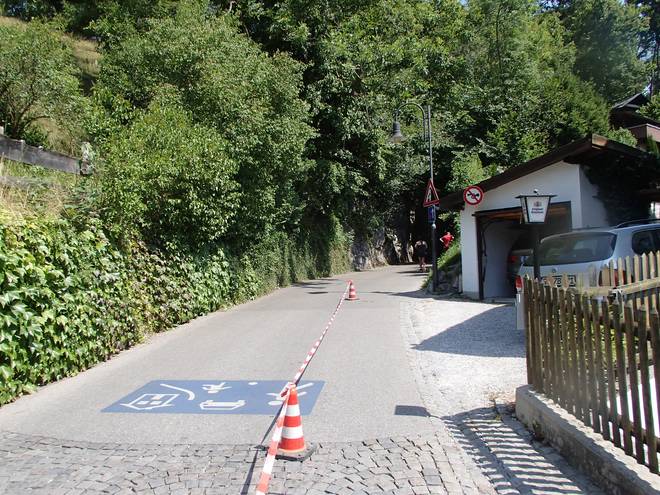 Parkstraße 11.37 Uhr / Km 39,3 Zurück in Alterschrofen. Auch das hätte man kürzer haben können. Kilometer 34,5 war nur 260 Meter entfernt. |