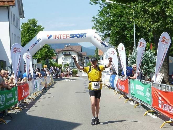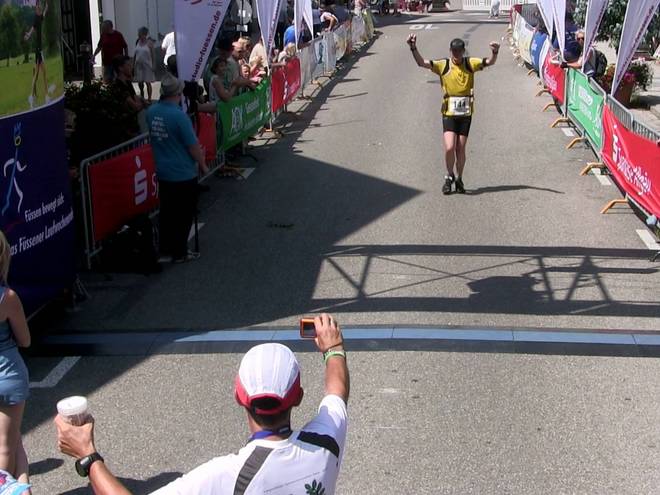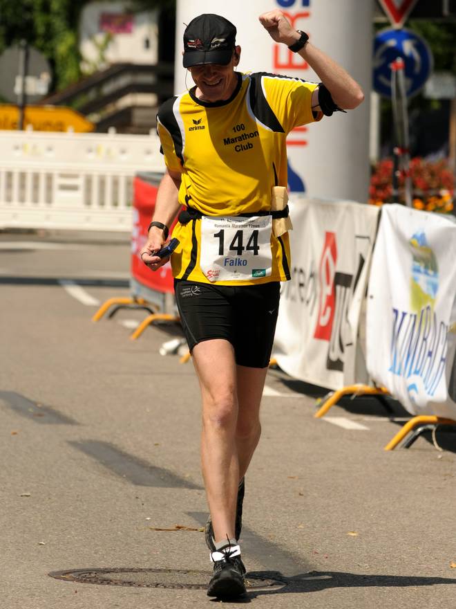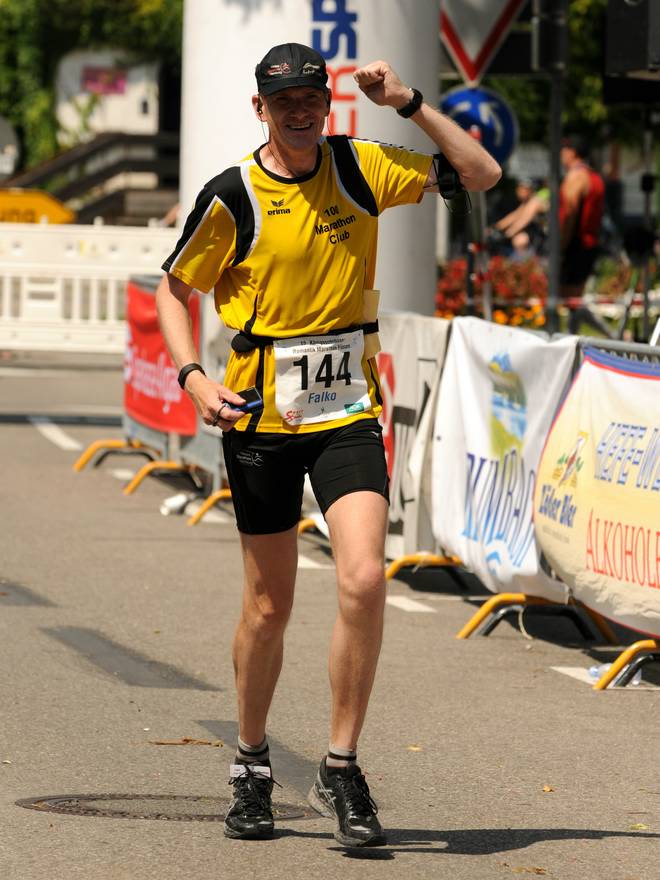 Kemptener Straße 11.57 Uhr / Km 42,15 Nun war es an der Zeit, mein 150. Marathon-Finish zu feiern. Foto: Foto-Team-Müller |