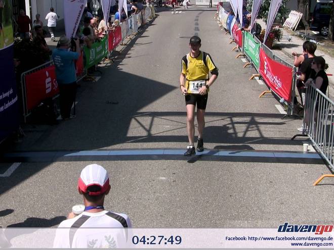 Kemptener Straße 11.58 Uhr / Km 42,195 4:27:49 Stunden. Geschafft. 150 Marathons. Geschafft. Foto: Davengo.com |