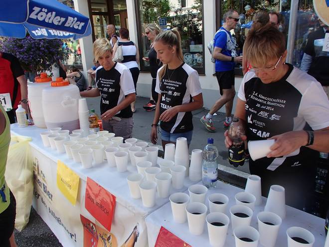 Kemptener Straße 12.03 Uhr Nach den Fotos schlug ich dann am Verpflegungsstand zu. Das Sauerkirsch-Iso hatte es mir echt angetan. |