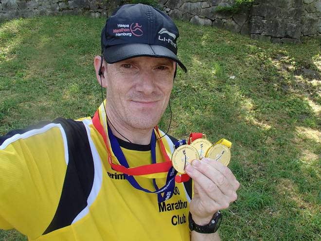 Parkplatz an der Morisse Drei Läufe und drei Medaillen binnen 20:58:10 Stunden. Es waren 73,2925 Kilometer zu laufen. |