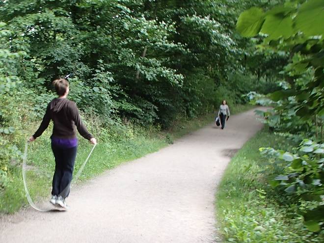 Runde 7 16.13 Uhr / Km 17,6 Neben Laufen kann man sich an den Teichwiesen auch anderweitig fit halten. |