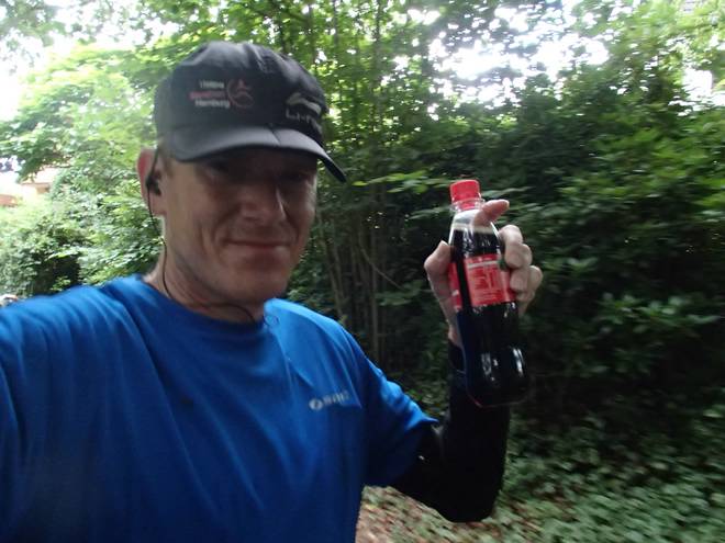 Runde 17 18.30 Uhr / Km 42,2 Aber keine Zeit zum lange Feiern. Ich holte mich eine Flasche Coca-Cola aus der Tasche und weiter ging es. |