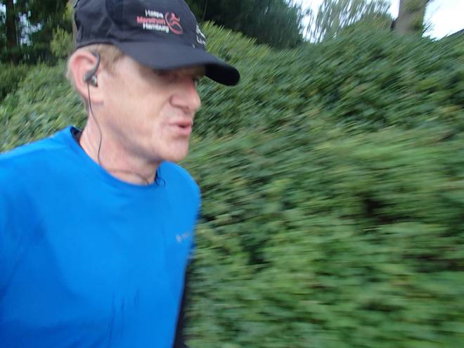 Runde 2 14.59 Uhr / Km 4,9 Der Anfang lieg recht gut. Das linke Bein tat nicht zu sehr weh, der Magen war ruhig und das Tempo war wie gewünscht. |