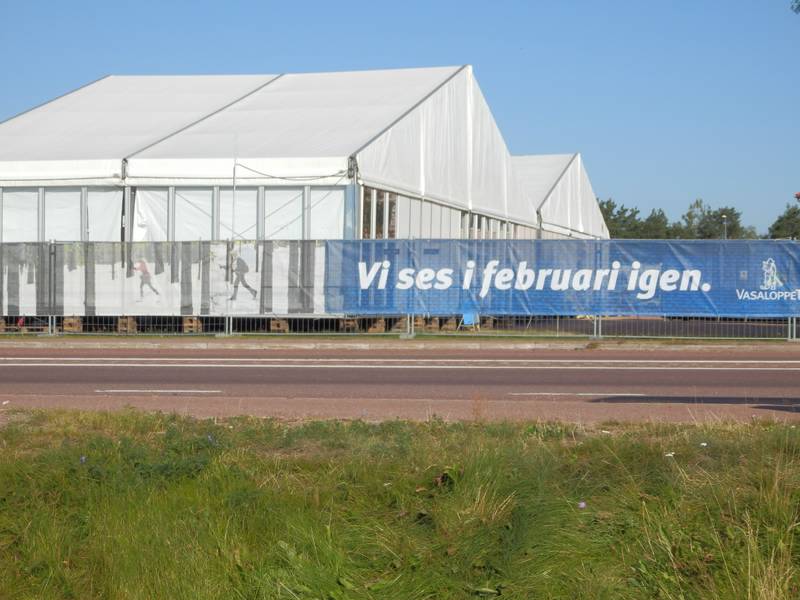Samstag, 22. August 2015 Vasalöparen Mora 0.08 Uhr Eigentlich sollte es bis 2.00 Uhr früh noch ein Fest am Zielplatz geben. Das war aber offenbar nur für geladene Gäste. Ich durfte jedenfalls nicht ins warme Zelt rein. |