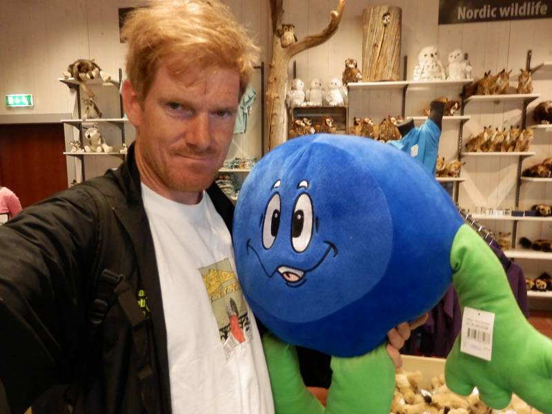 Orsa Grönklitt Björnpark Eine Plüschblaubeere. Da die Blaubeersuppe traditionell das Getränk des Vasaloppet ist, ist die Blaubeere inoffiziell eines der Symbole des Vasaloppetr. Wenn sie doch nur nicht so groß, so teuer und vor allem so groß (für die Mitnehme im Flugzeug) gewesen wäre... |