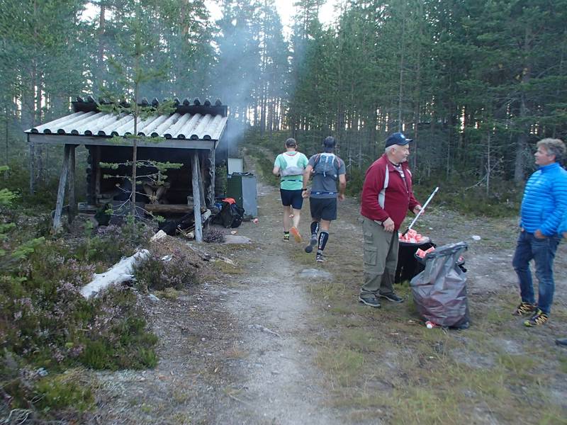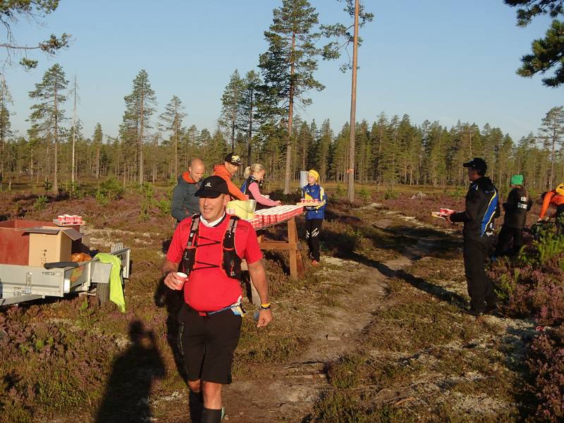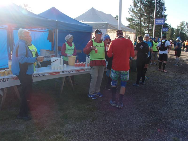 Måndsbodarna 7.59 Uhr / Km 23,4 Zeit für ein Frühstück. Neben Getränken und Obst gab es auch belegte Brotchen, Wurst ohne Brötchen... |