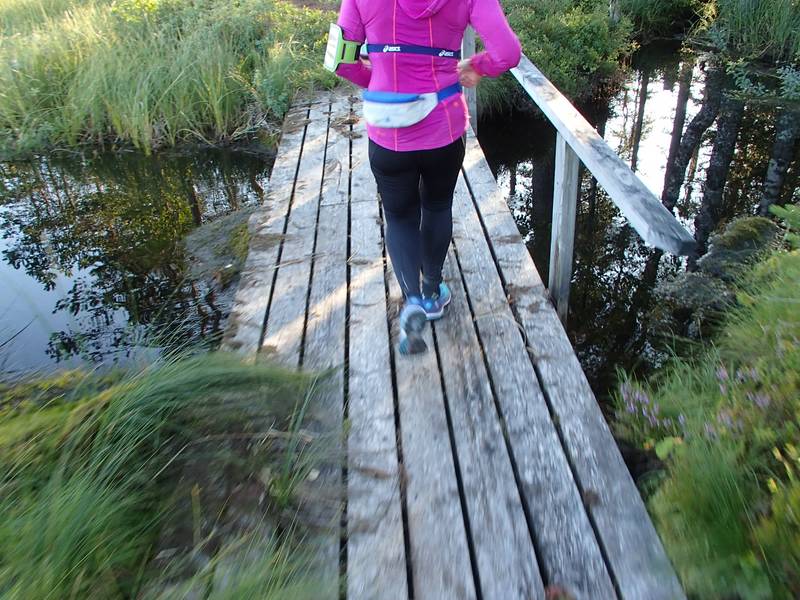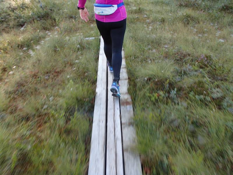 6.42 Uhr / Km 13 Auf den Holzplanken lief es sich relativ gut. Auch wenn man es mit dem Balancieren eher nicht so hat. Besser als durch die Moorlandschaft zu laufen war es allemal. |