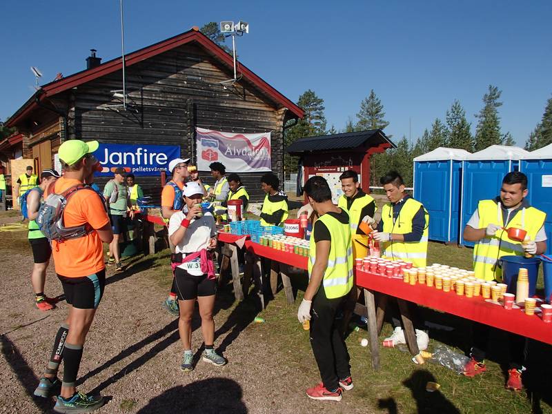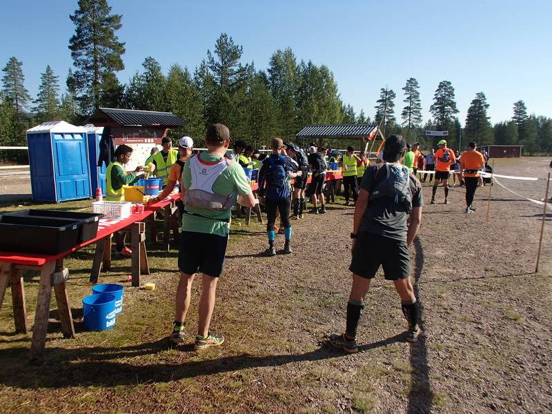 Risberg 9.20 Uhr / Km 34,2 Ganz so umfassend wie in Måndsbodarna war das Essen- Angebot hier nicht. Aber man bekam ordentlich zu trinken. |