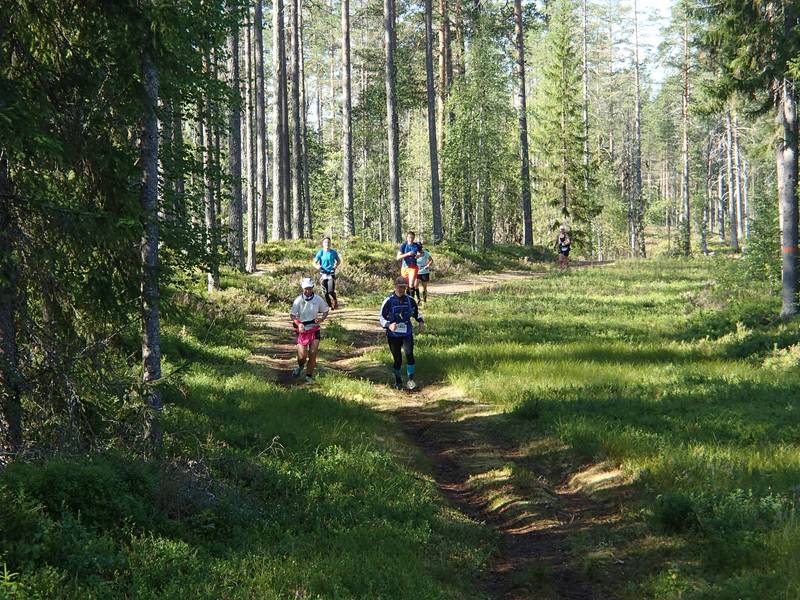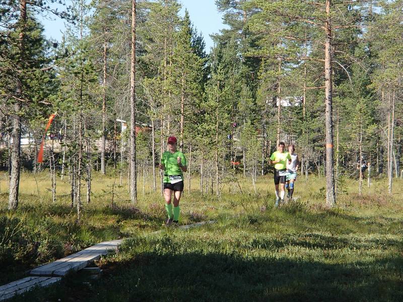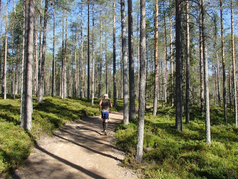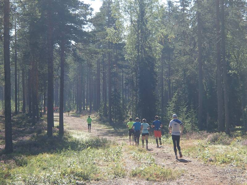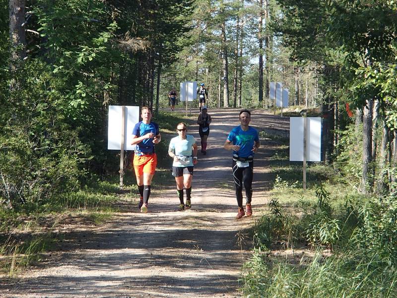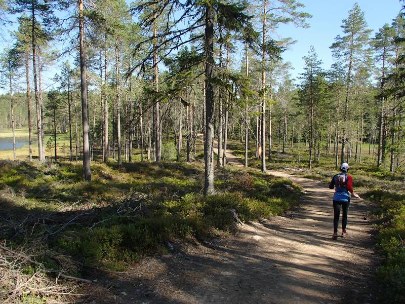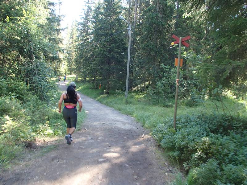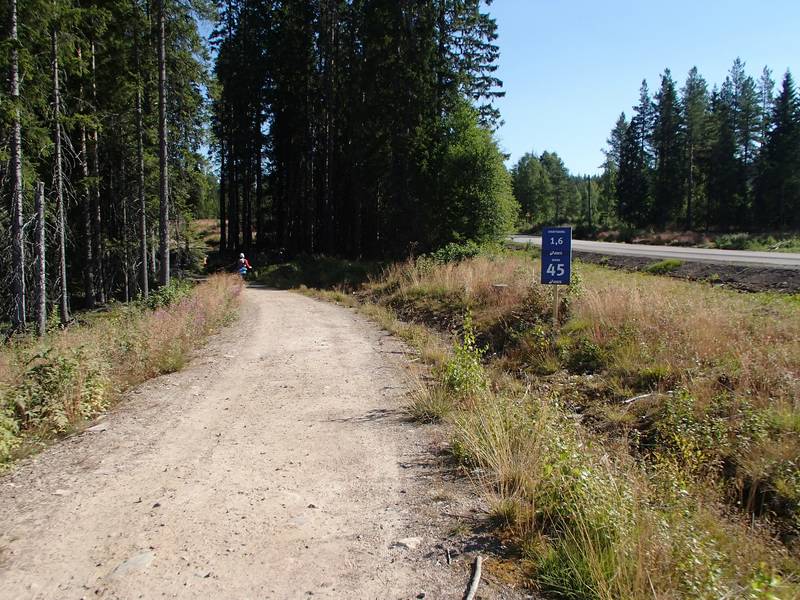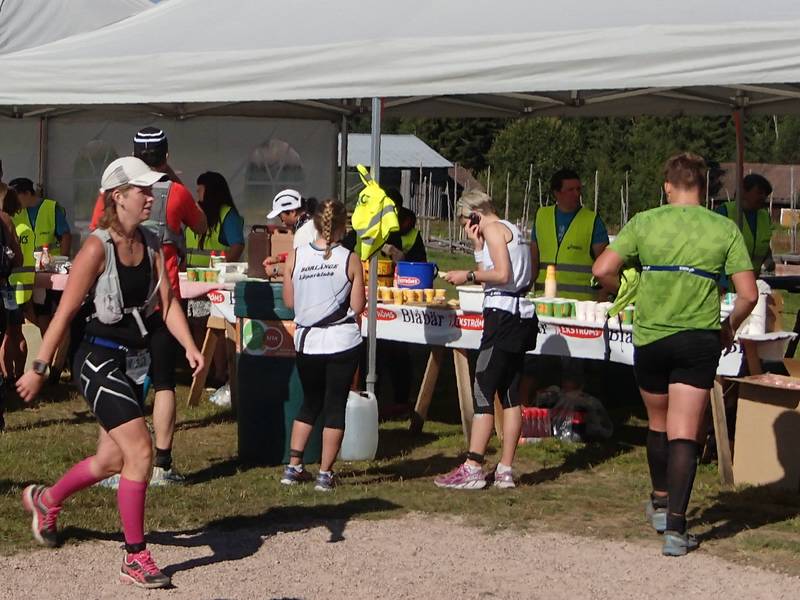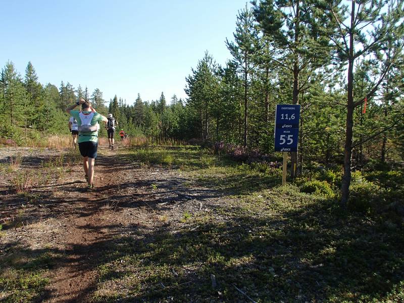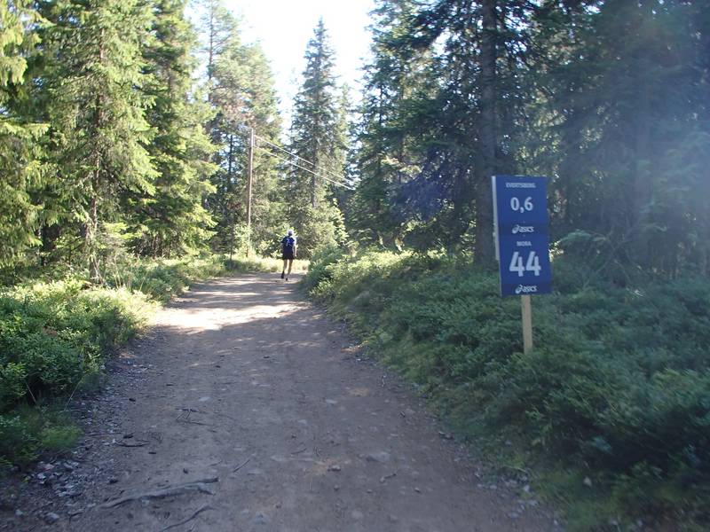 Mellansjön 10.21 Uhr / Km 42 Ich sah immer noch gut aus und war auch gut unterwegs. Keine nennenswerten Probleme. Nach dem ich so zwischen Kilometer 15 und 21 wegen der dort schweren Strecke eine Weile recht genervt war, ging es nun längst wieder optimistisch voran. |