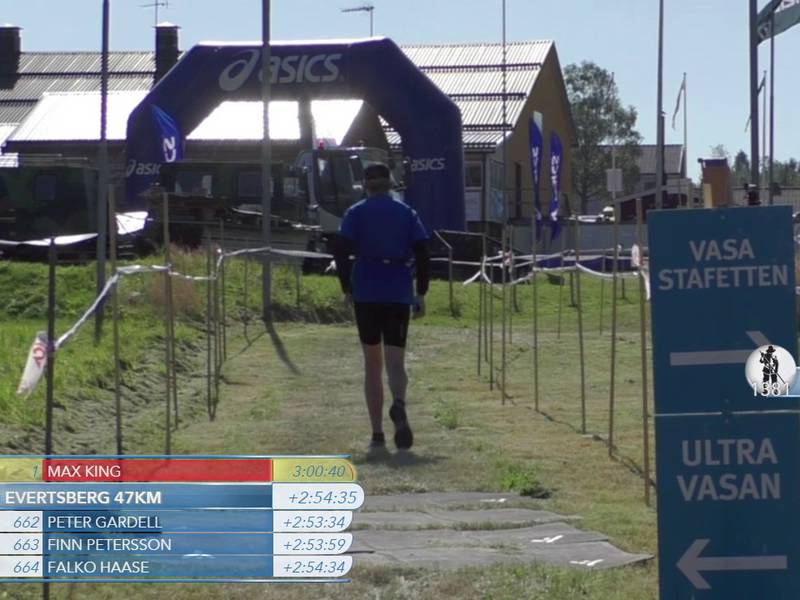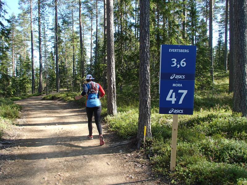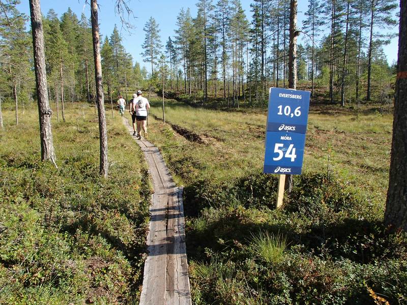 10.45 Uhr / Km 45 Zunächst konzentrierte ich mich dann doch erst einmal darauf, Evertsberg zu erreichen. Selbst bei einer Endzeit von um die zwölf Stunden war das mehr als sechs Stunden entfernt. Ungefähr zur selben Zeit lief in Mora der Sieger Jonas Buud in 5:45:08 Stunden ins Ziel. |