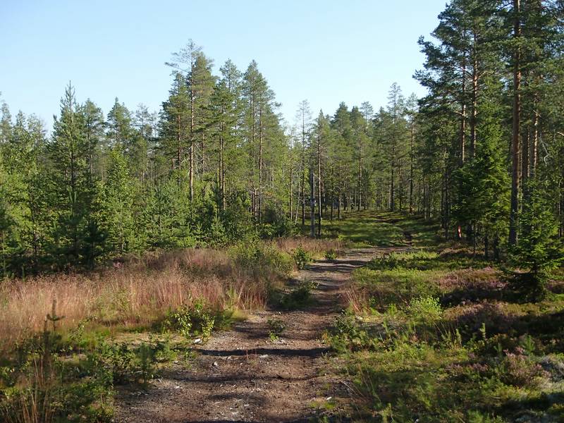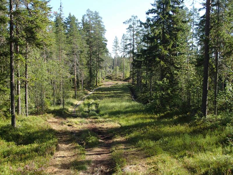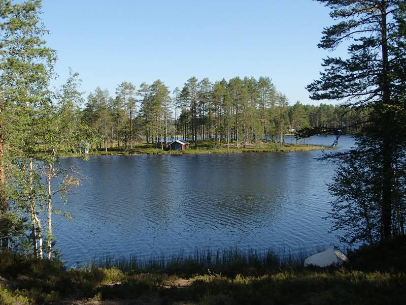 Fenndystienn 9.52 Uhr / Km 38 Nach längerer Zeit tauchte mal wieder ein See zwischen den Bäumen auf. |