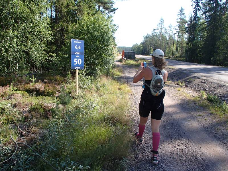 10.44 Uhr / Km 45 Unter zwölf Stunden bis nach Mora? Erstmals dachte ich auch mal über eine Endzeit nach. Und wenn es weiter so gut laufen würde, war das kein unmögliches Ergebnis. |