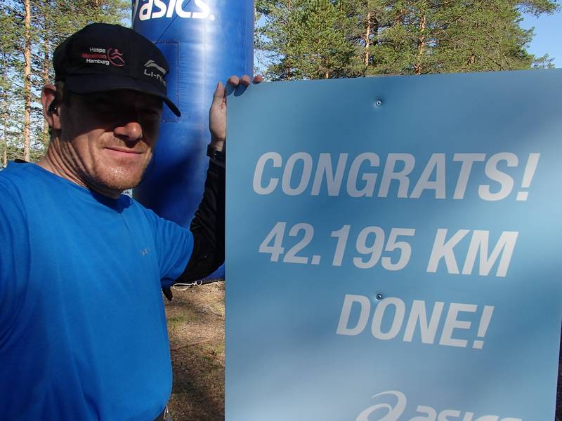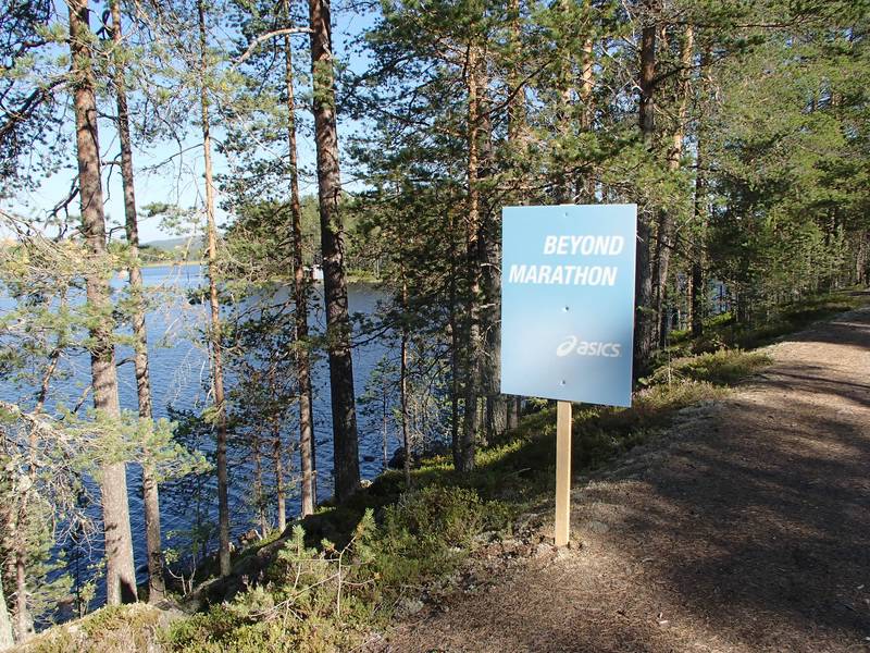 Mellansjön 10.18 Uhr / Km 41 Etwas überraschend stand ich plötzlich an der Marathon-Marke. So etwas hatte ich zwar erwartet, aber doch erst nach dem Schild mit der 48. |