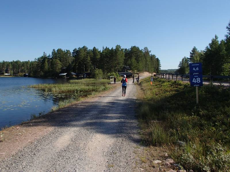 Mellansjön 10.20 Uhr / Km 41 Immer noch waren mehr als 48 Kilometer zu laufen. Also noch einen Marathon und dann noch sechs Kilometer. Puh... |