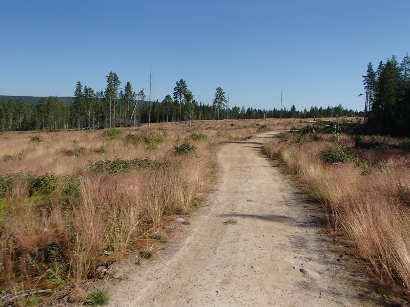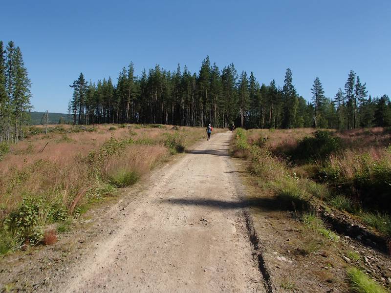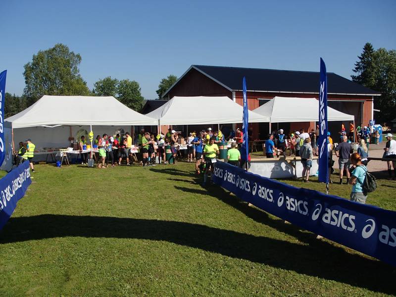 Mellansjön 10.08 Uhr / Km 40 Allmählich wurde es richtig warm. Meine Wechselsachen warteten in Evertsberg auf mich. So lief ich immer noch in den wärmeren Sachen vom frühen morgen. Da waren sie zwar zu kühl, aber nun waren sie zu warm. |