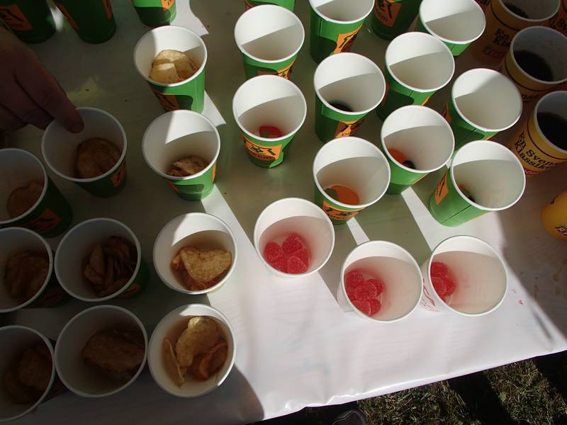 Evertsberg 10.58 Uhr / Km 46,6 Wer auf den ersten Blick den Süßkram nicht finden konnte, der mußte mal ganz genau in die Becher gucken. |