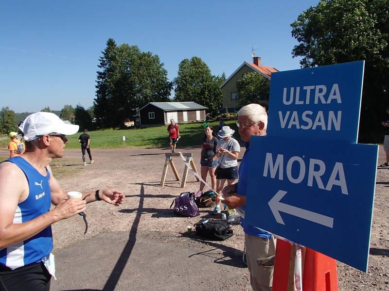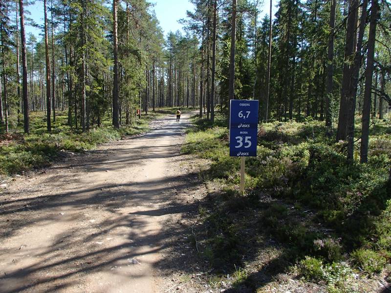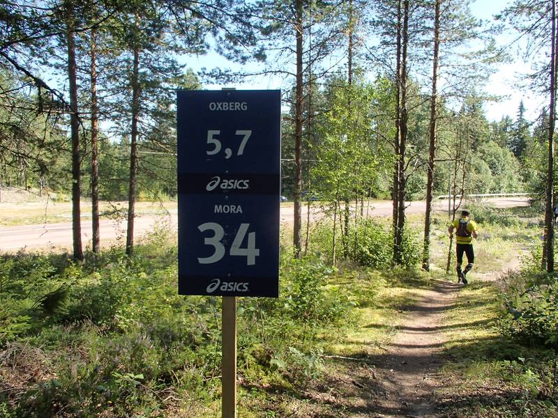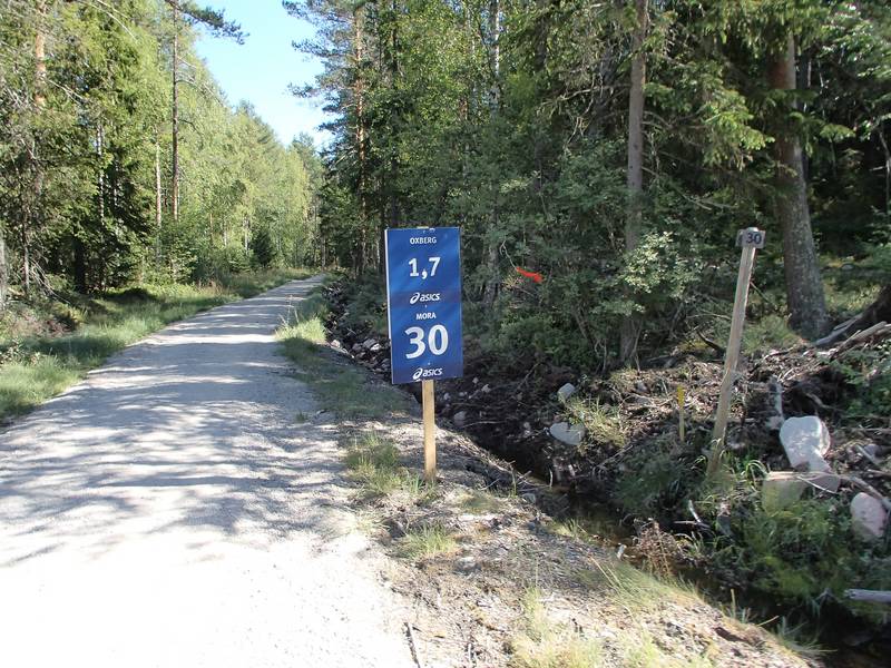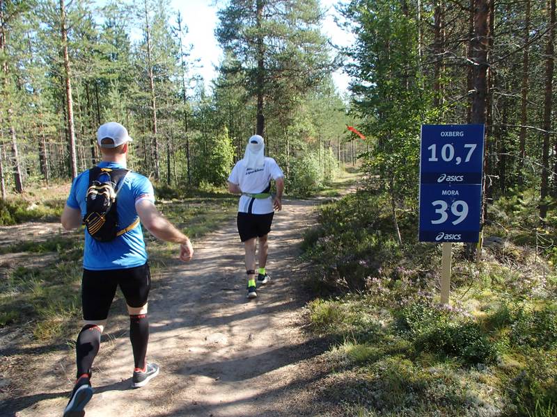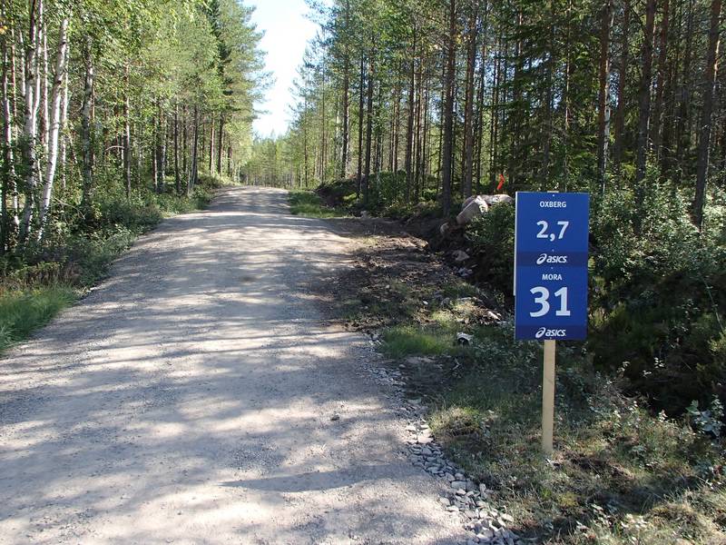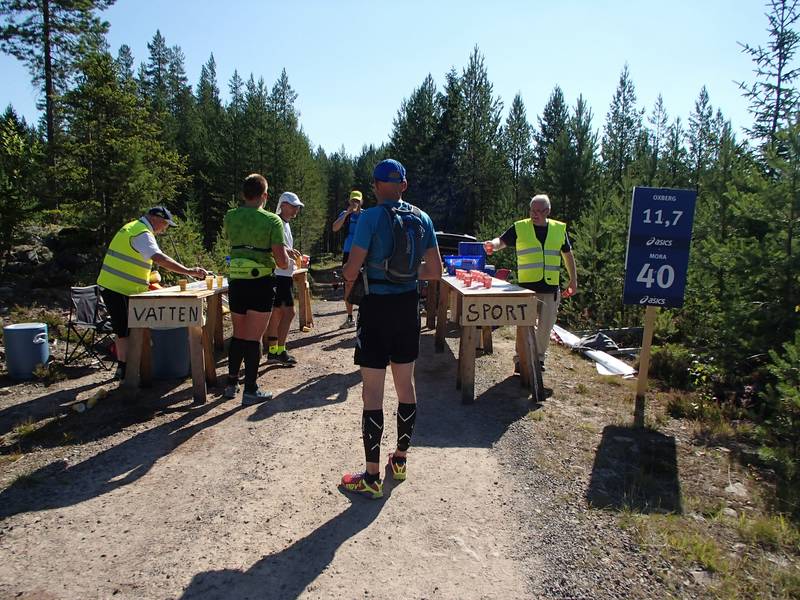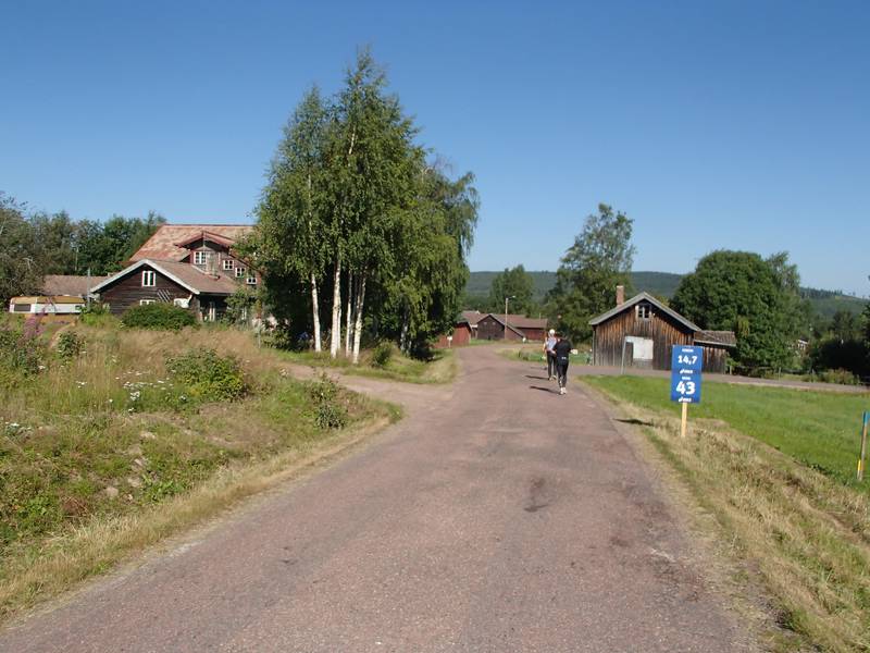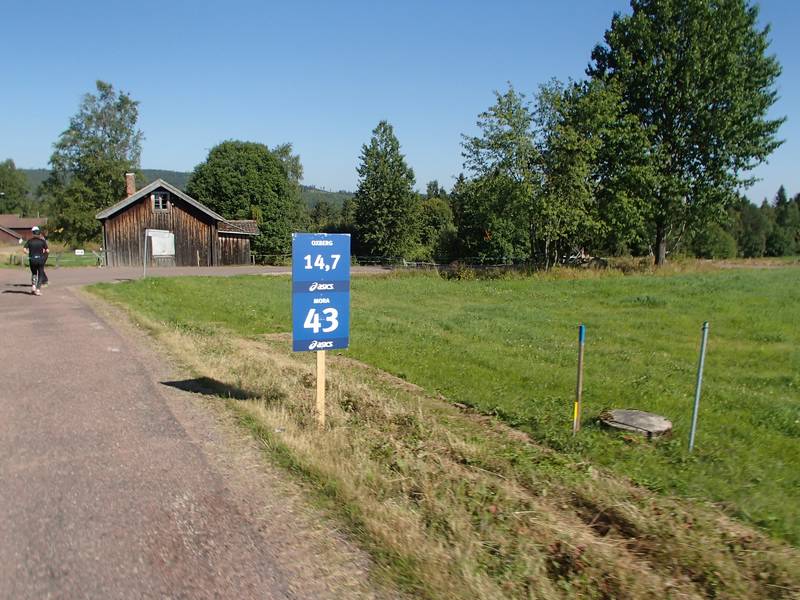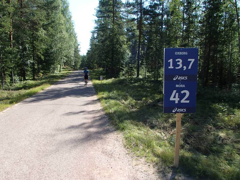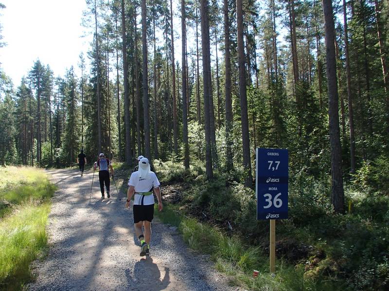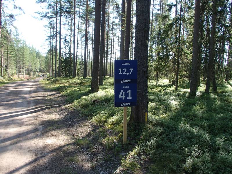 Oxberg 13.10 Uhr / Km 61,7 Wegen des Zeitlimits machte ich mir keine Sorgen. Da lag ich in Oxberg 2:22 Stunden im Plus. Auch die Kondition war noch gut. Aber was würde mit dem Schienbein werden, das sich jetzt immer häufiger und immer schmerzhafter meldete? Bis Mora waren es immerhin noch 28,3 Kilometer. |