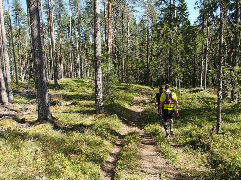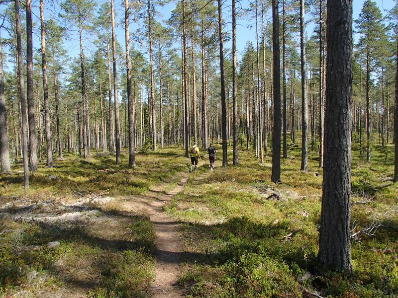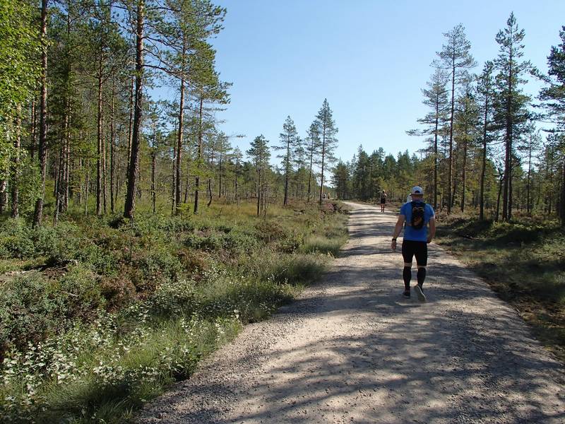 Björnarvet 12.28 Uhr / Km 57 Verglicht man die Strecke im fünften Abschnitt mit den früheren Kilometern so wurde der Wildnis-Anteil nun kleiner. |
