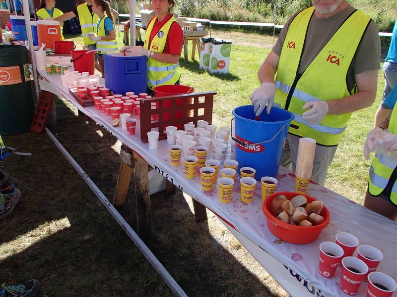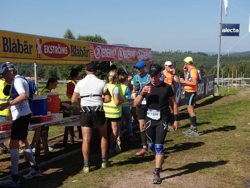 Oxberg 13.08 Uhr / Km 61,7 Ach... die gute Blaubeersuppe. Da schlug ich gleich mal zu. Und natürlich auch noch ein paar "normale" Getränke. Es war ja so ziemlich alles da. |