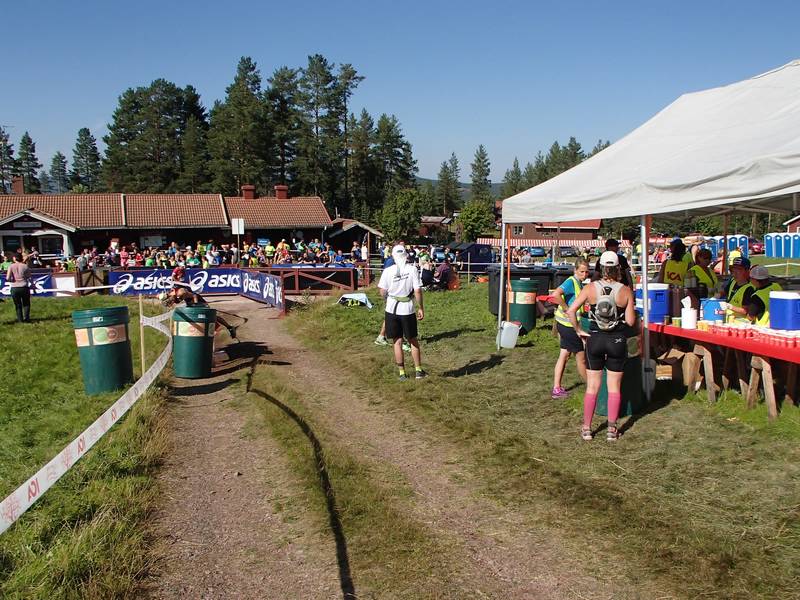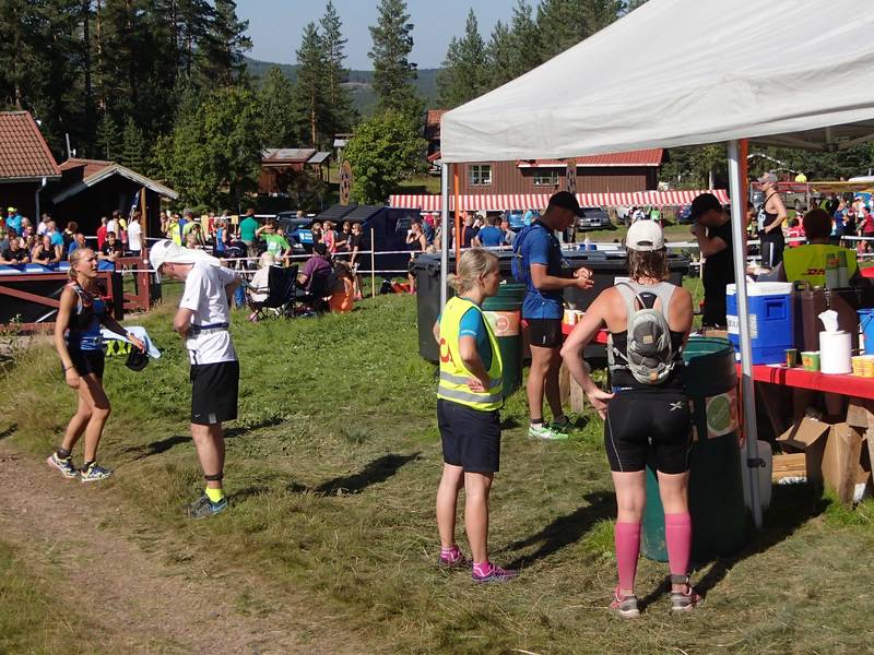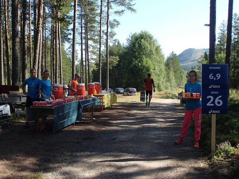 Hökberg 14.34 Uhr / Km 70,9 In Hökberg gab es wieder einen kompletten Verpflegungsstand. Vorne Wasser zum Kühlen. |