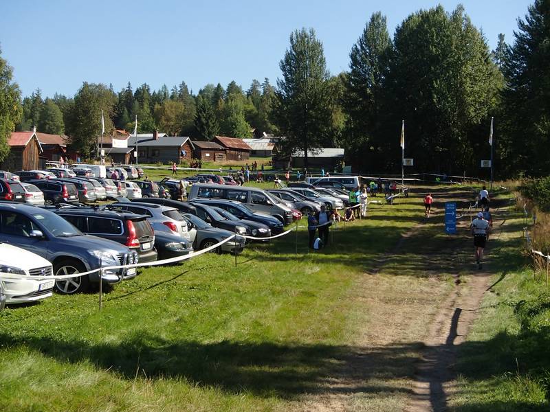 Hökberg 14.32 Uhr / Km 70 Die vielen Autos kamen wohl vor allem von den vielen Staffel-Läufern, die hier ihren nächsten Wechsel hatten. |