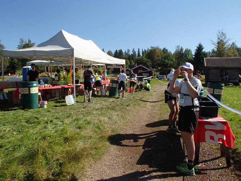 Hökberg 14.38 Uhr / Km 70,9 Bevor es weiter ging, griff ich noch zwei weitere Male bei den Getränken zu. Vermutlich war es eher Hunger als Durst. Da fehlte es mir an Erfahrung im Ultrabereich. Bei Marathons kenne ich Hunger nur extrem selten. |