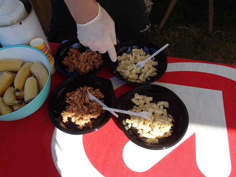 Hökberg 14.35 Uhr / Km 70,9 Und sogar Nudeln. Die waren zwar kalt, aber sehr lecker. Da griff ich auch zu. |