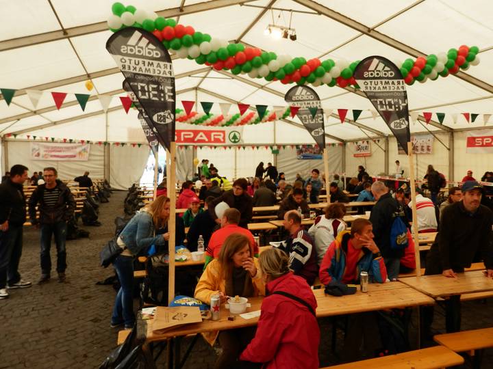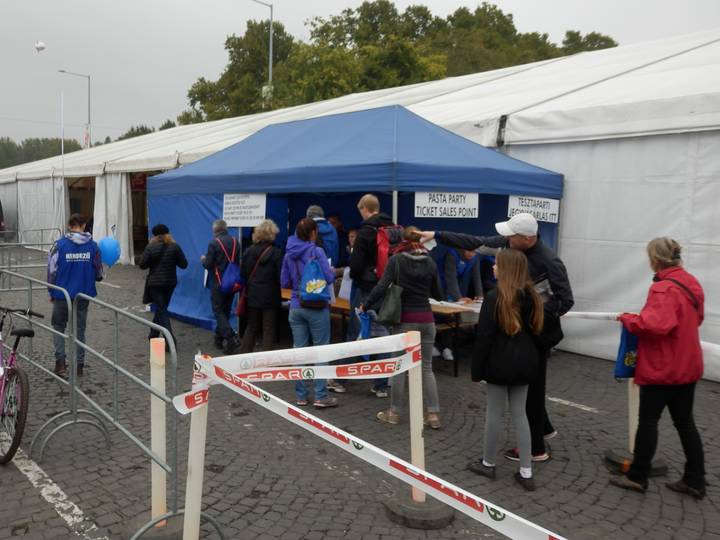 Ötvenhatosok tere Die Startnummer und die sonstigen Unterlagen gab es schnell und problemlos. Zur Startnummer gab es auch ein Paket Nudeln und eine Flasche Wasser. |