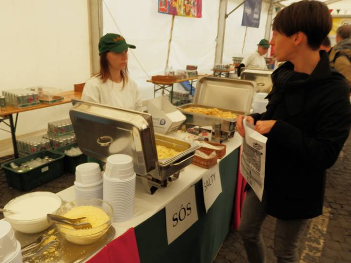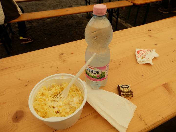 Ötvenhatosok tere Es waren mehr Nudeln als es aussieht. Die waren lecker. Ich hatte allerdings etwas viel kalten Käse abbekommen. Und wieder gab es eine Flasche Wasser. |
