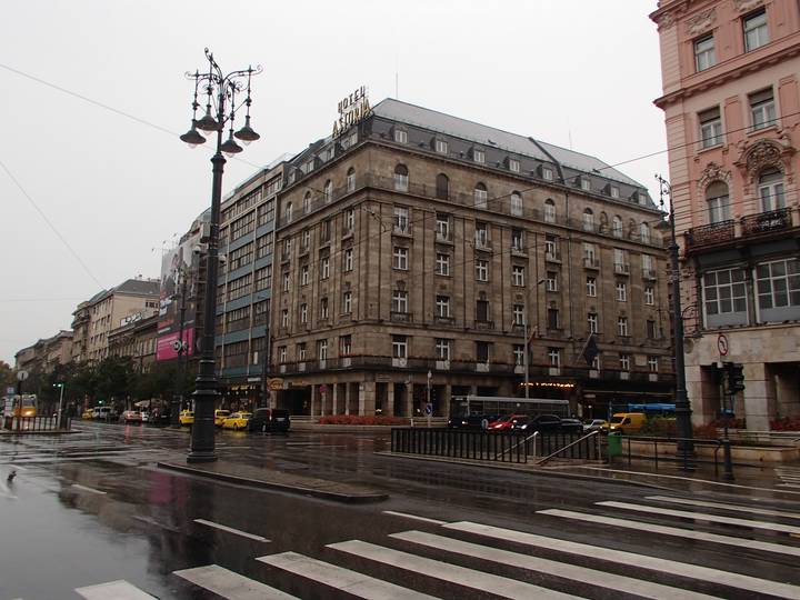 Kossuth Lajos utca Múzeum körút Danubius Hotel Astoria 8.25 Uhr Der Wetterbericht hatte es richtig vorausgesagt. Der Regen kam am Samstag kurz nach 21 Uhr, seit dem Zeitpunkt hatte es nicht mehr aufgehört und so sollte es auch den ganzen Tag weitergehen. Na toll. |