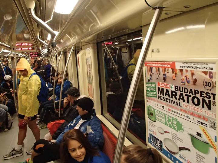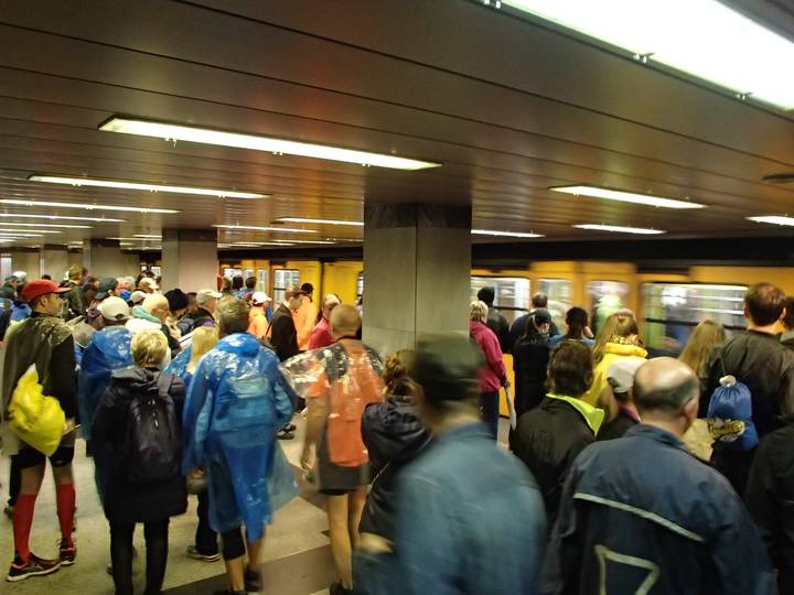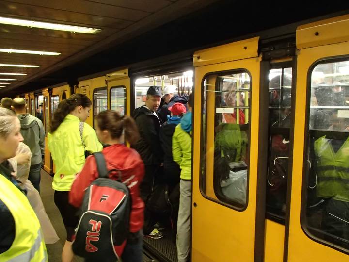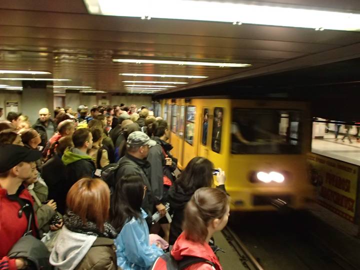 Deák Ferenc tér M1 Da es die einzige Metro Richtung Start war und man den normalen Sonntags-Fahrplan beibehielt, wurde es natürlich eng. |